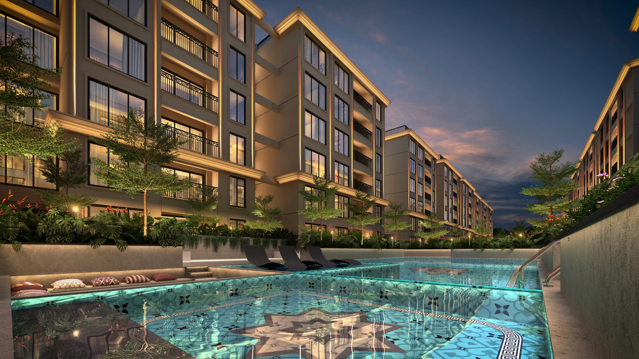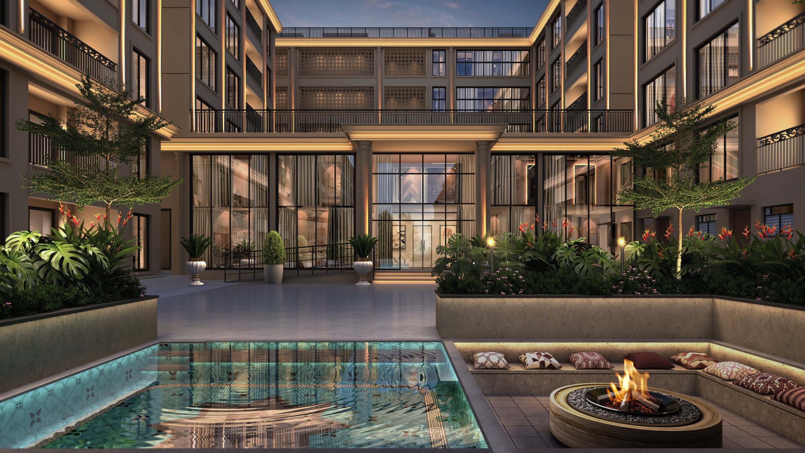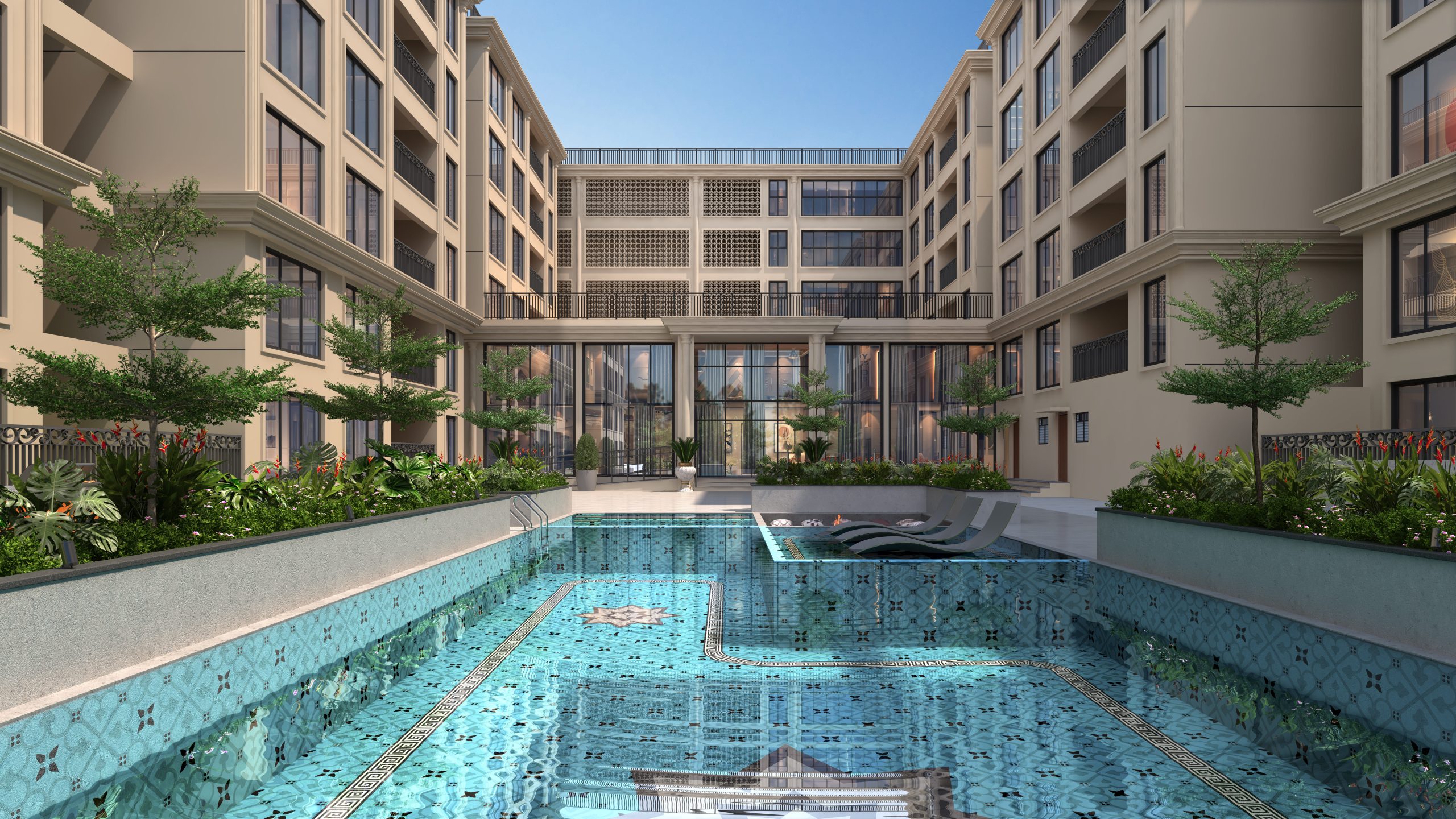 Built with style; a B+G+5 floor structure with a classical-style façade reflects timeless architectural elegance. The community is enhanced by a tropical-themed landscape designed for natural circulation and seamless movement. An 8200 sft. clubhouse with indoor amenities elevates the lifestyle experience, while a vehicle-free podium with basement parking ensures a safe, pedestrian-friendly environment. Convertible bedroom balconies further enhance living spaces with greater ventilation, natural light, and open views.