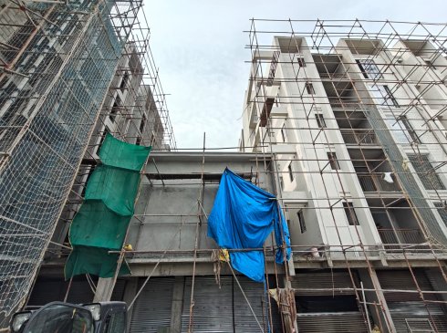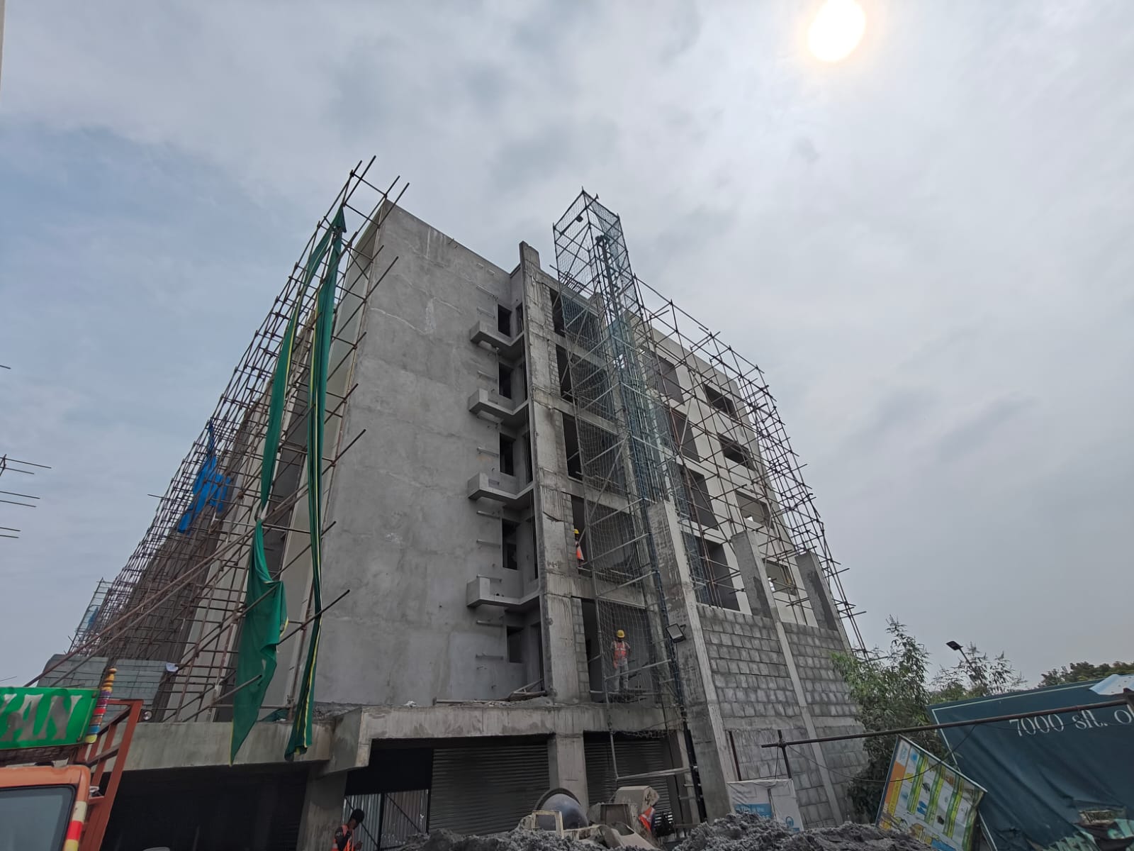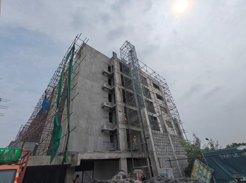 - A Stilt + 5 floor apartment structure with a Contemporary facade complemented with an elegant facade lighting enumerating the grandeur lifestyle.