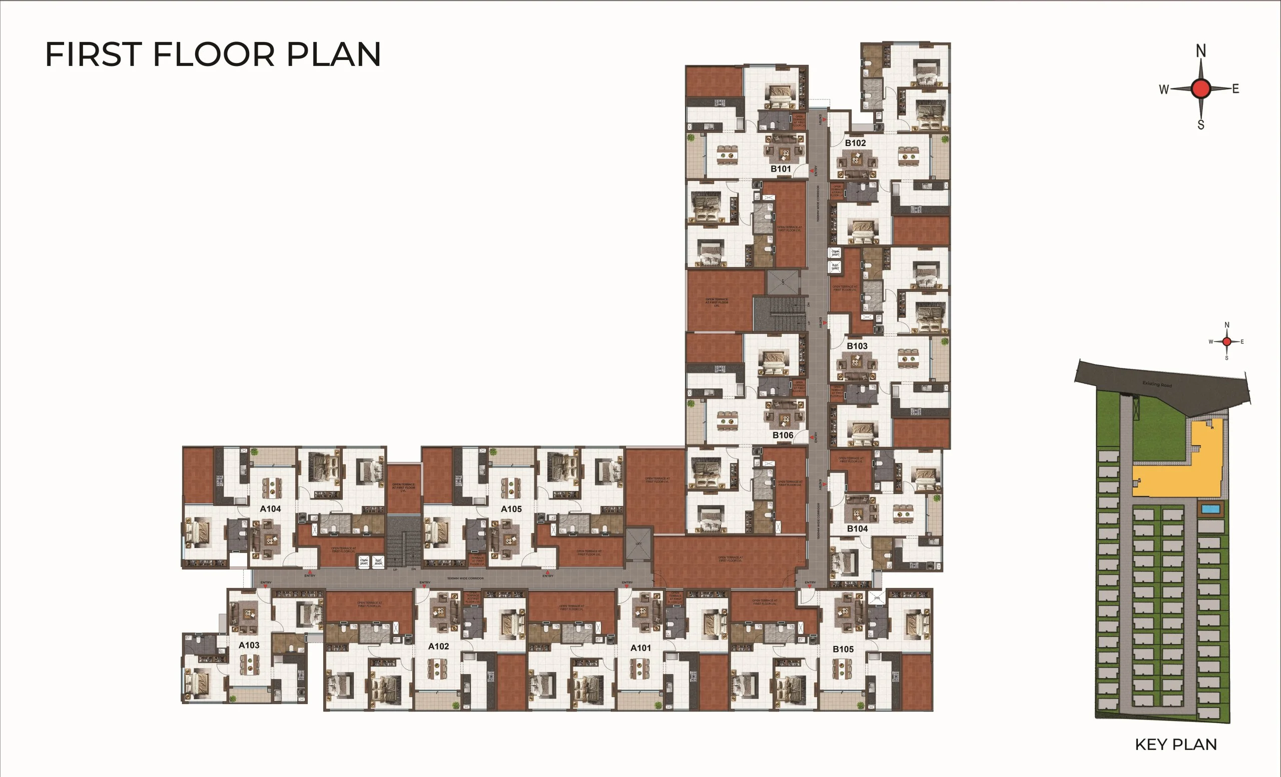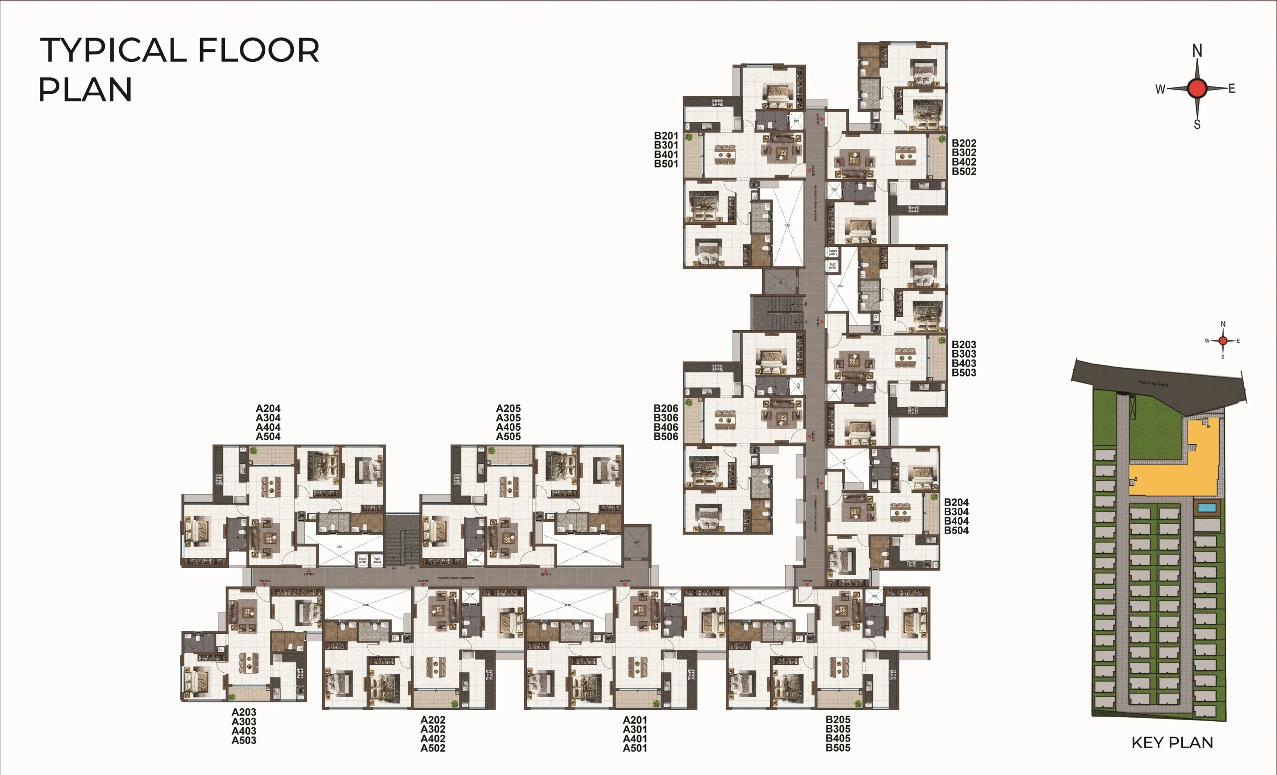 : Respective Unit numbers sign board will be provided in Lift lobby