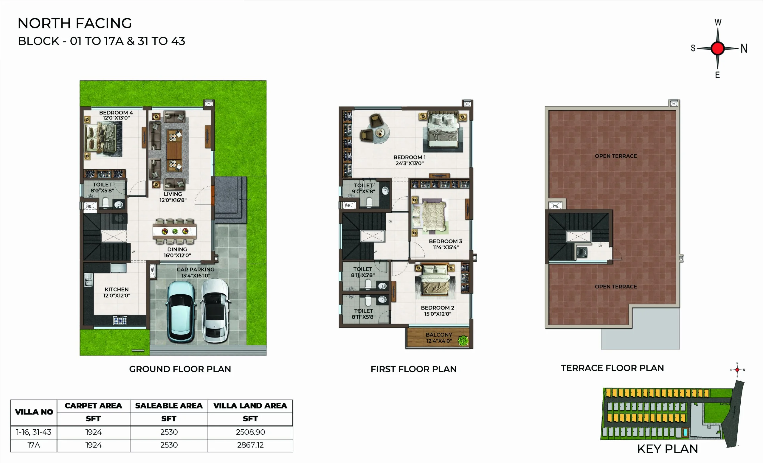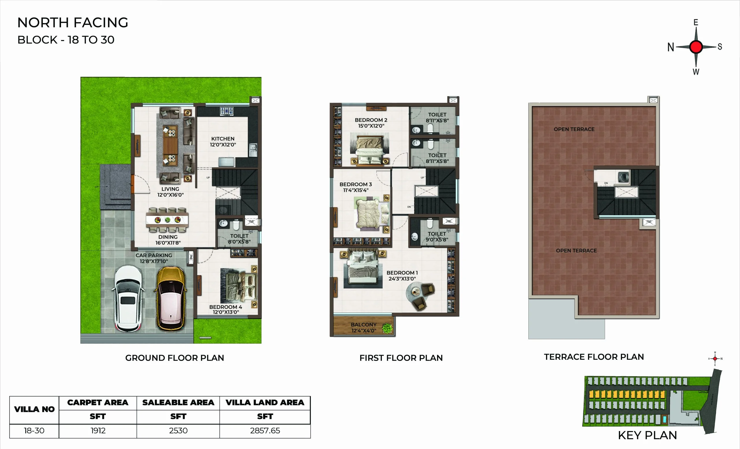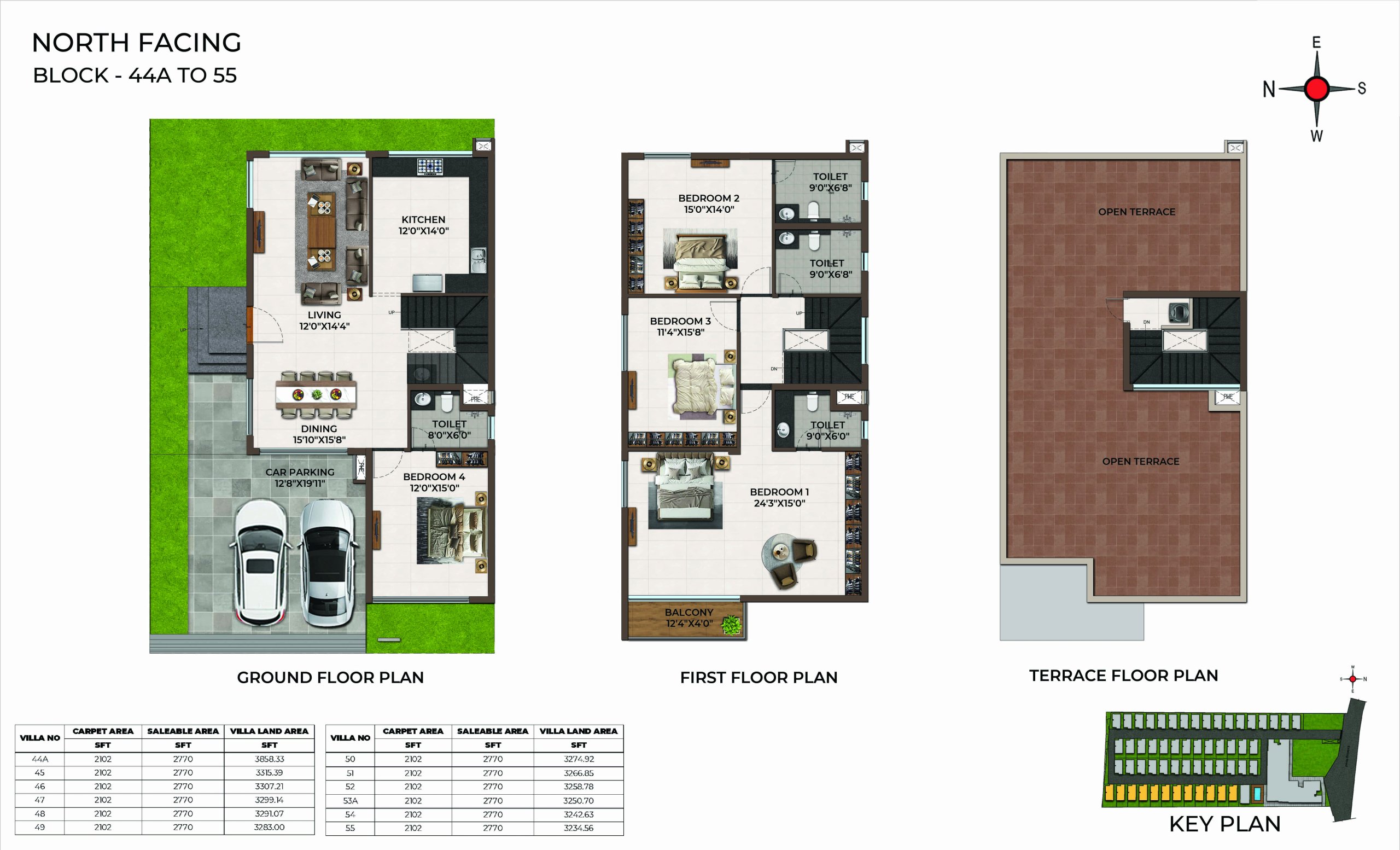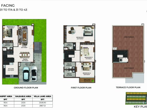 | 4 BHK | Villa | 6.56Cents - 8.86Cents | 2530 Sqft - 2770Sqft | ₹ 1.65Cr to 2Cr |