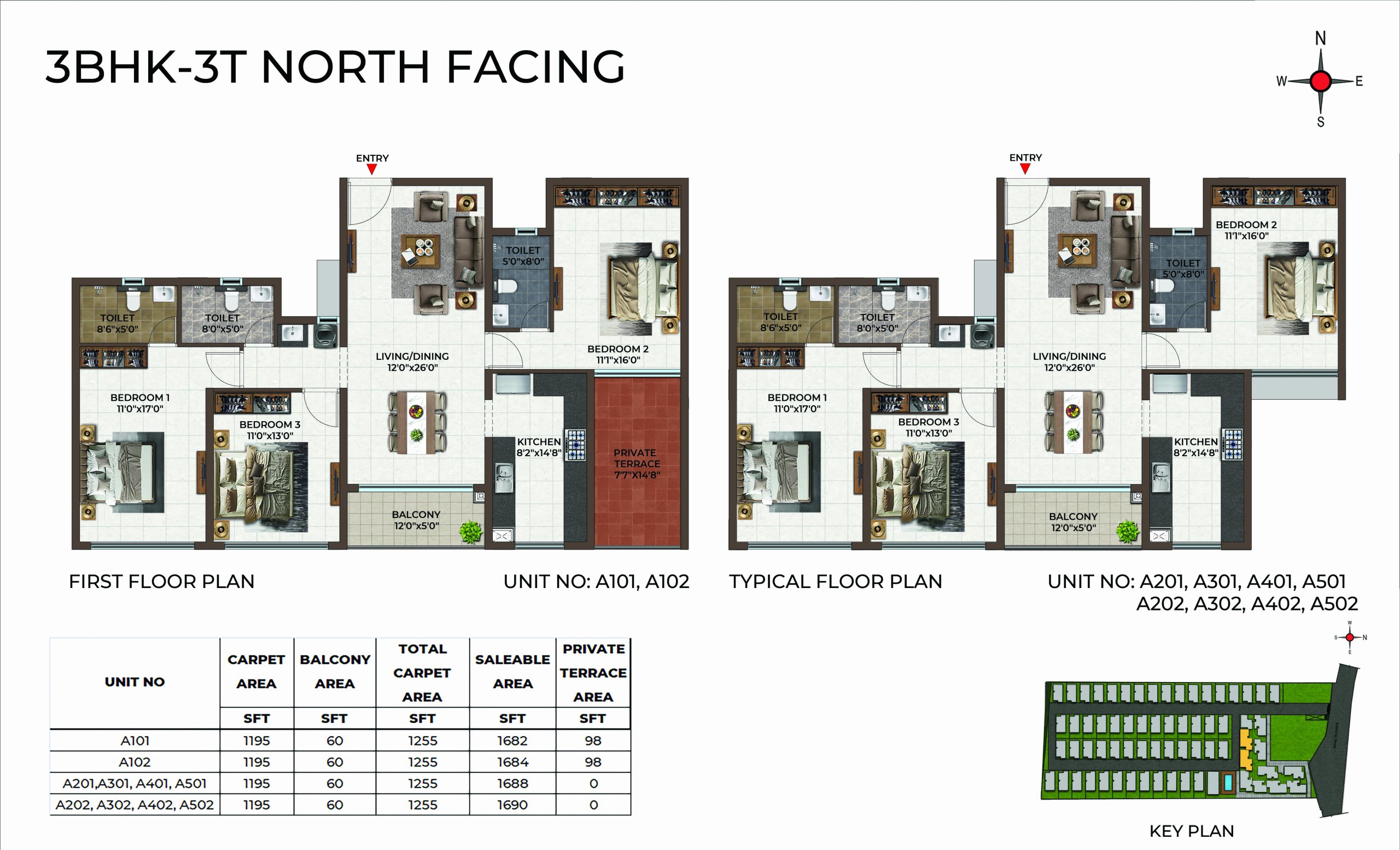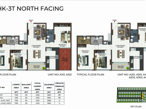 | 3 BHK | Apartment | - | 1697 Sqft - 1741Sqft | ₹ 4999 / Sqft | ₹ 89L to 95L |