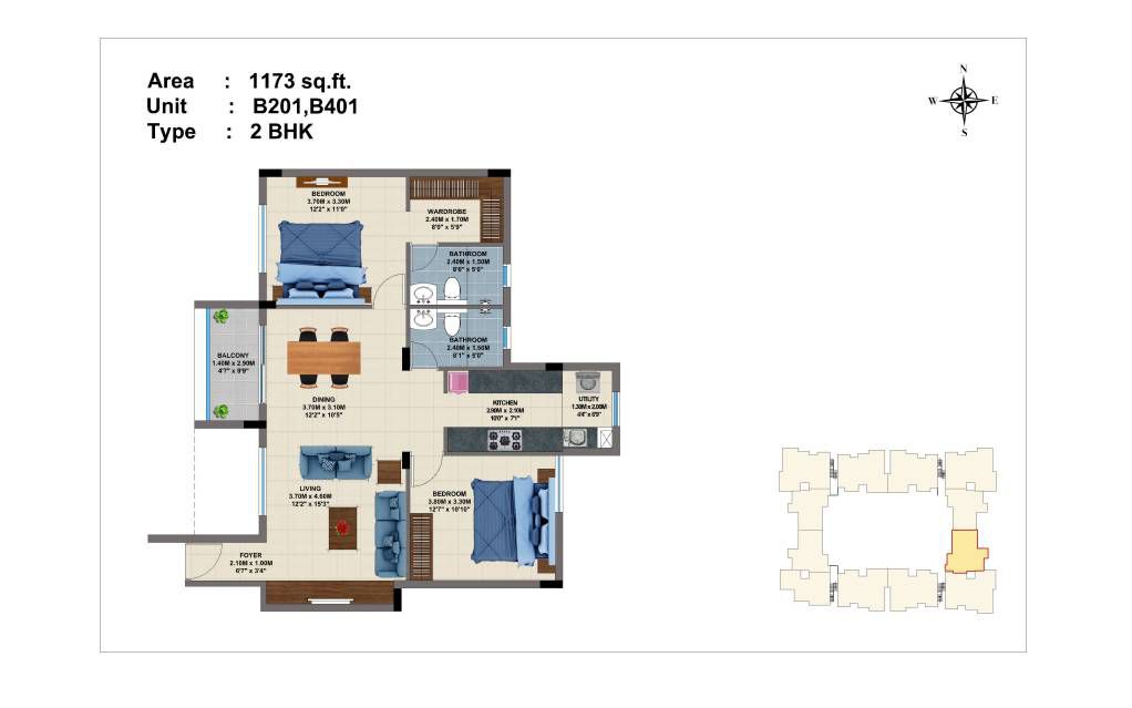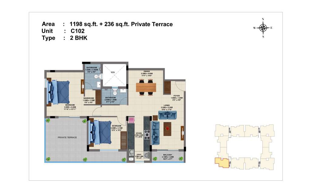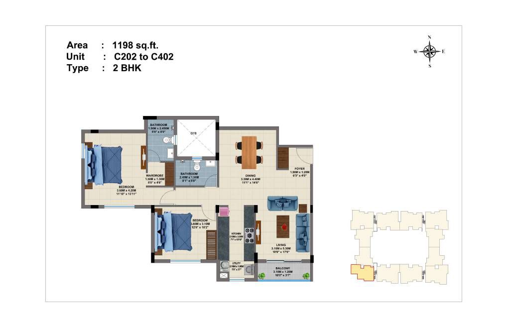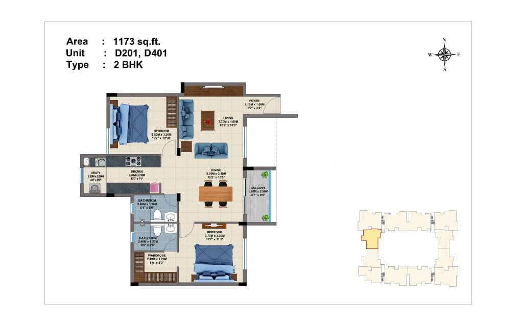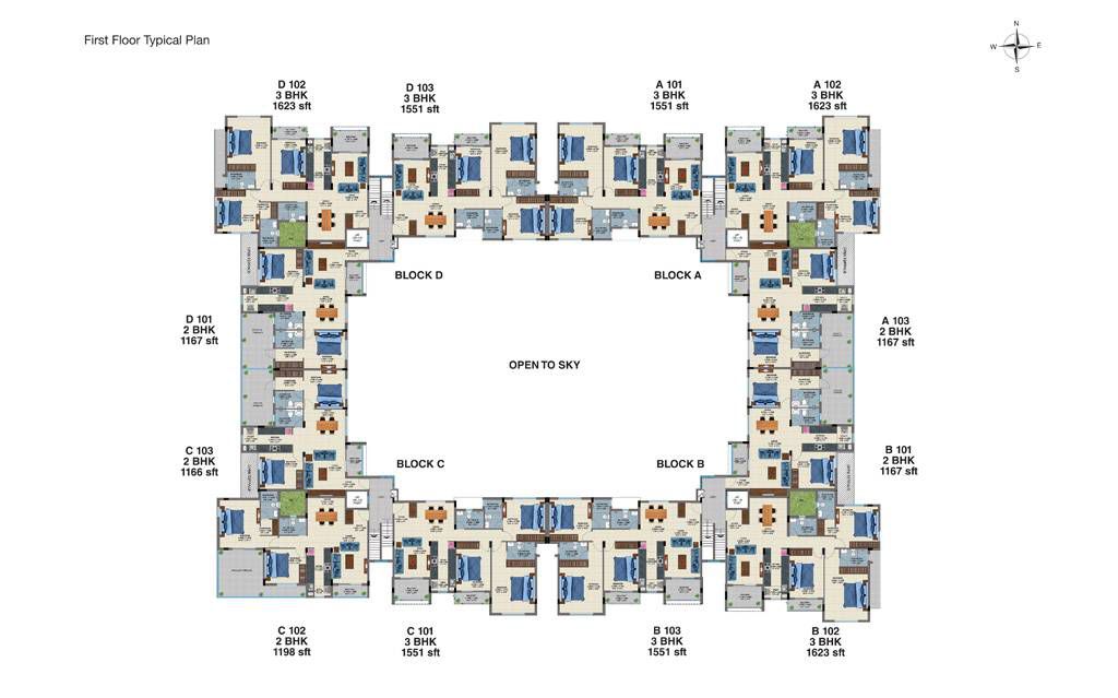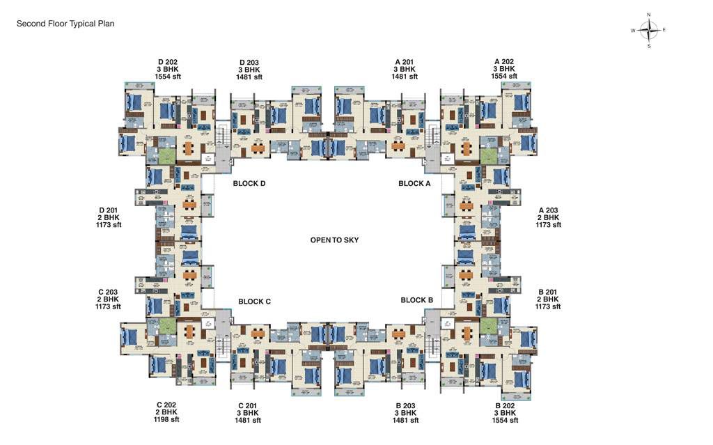 | 2 BHK | Regular | 1173 Sqft - 1198 Sqft | ₹6200/Sqft | Sold out |