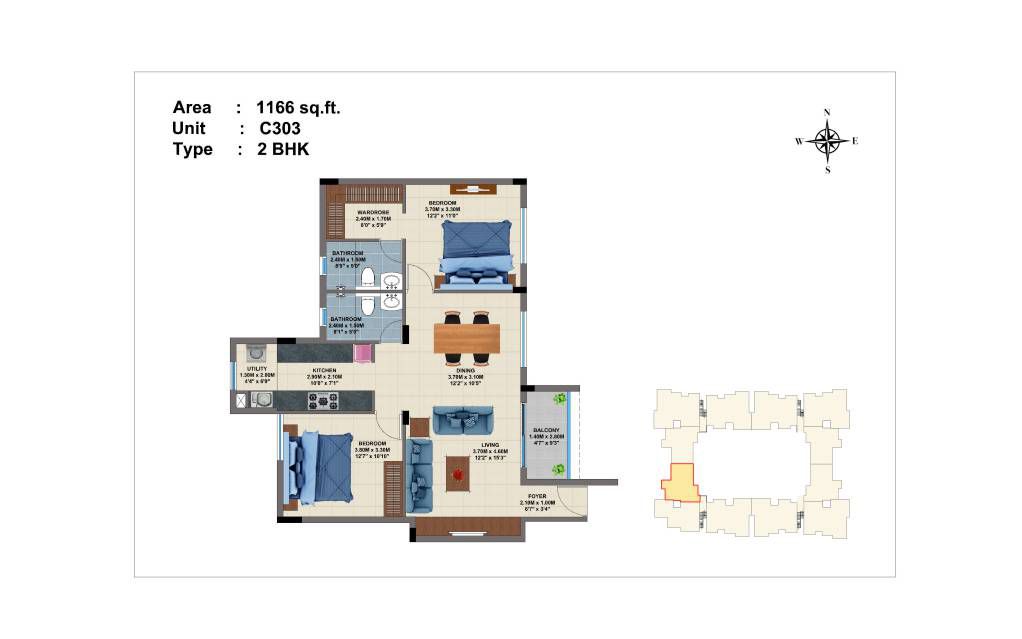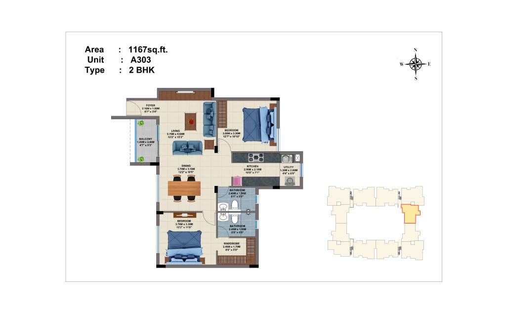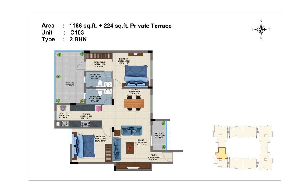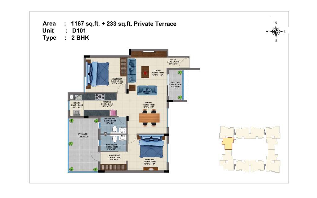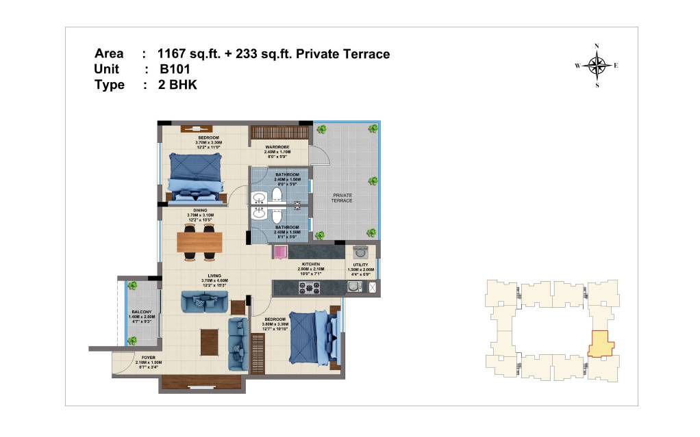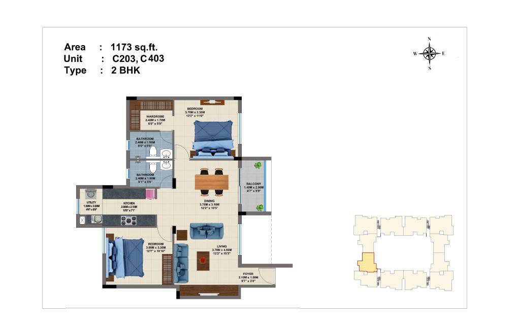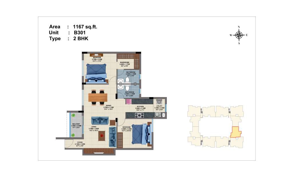 | 2 BHK | Regular | 1173 Sqft - 1198 Sqft | ₹6200/Sqft | Sold out |