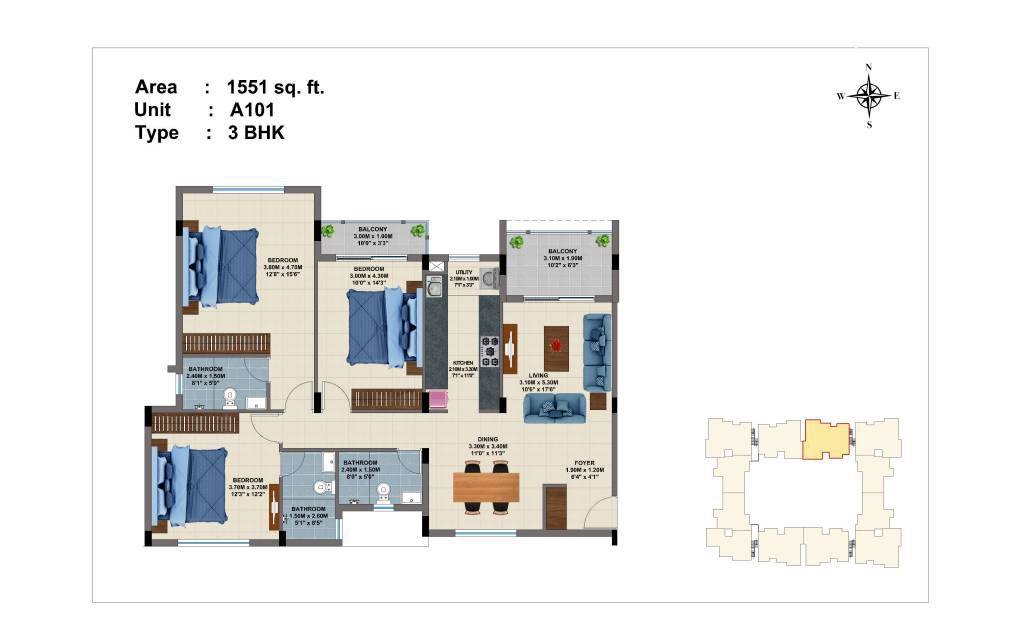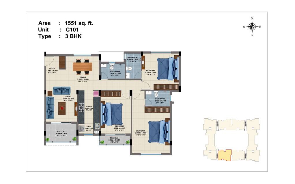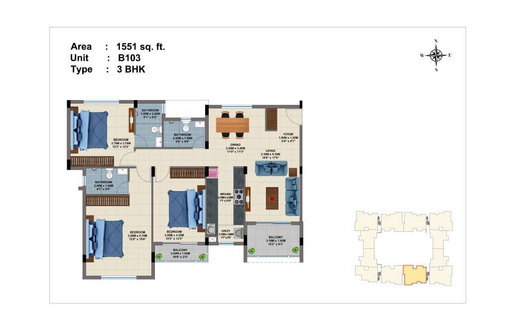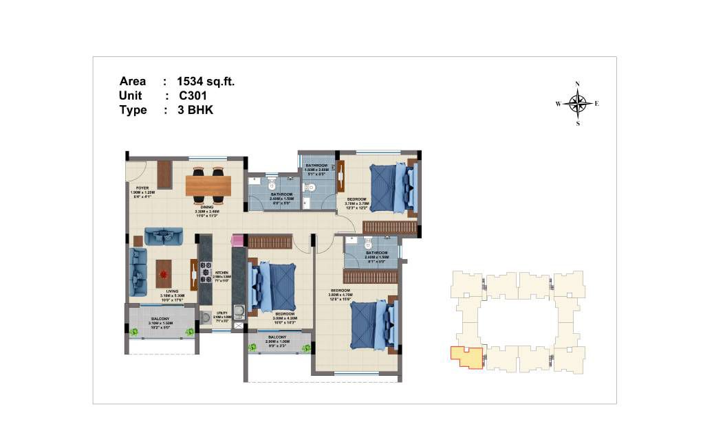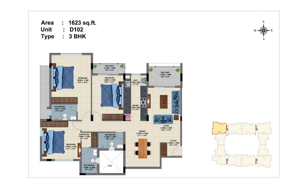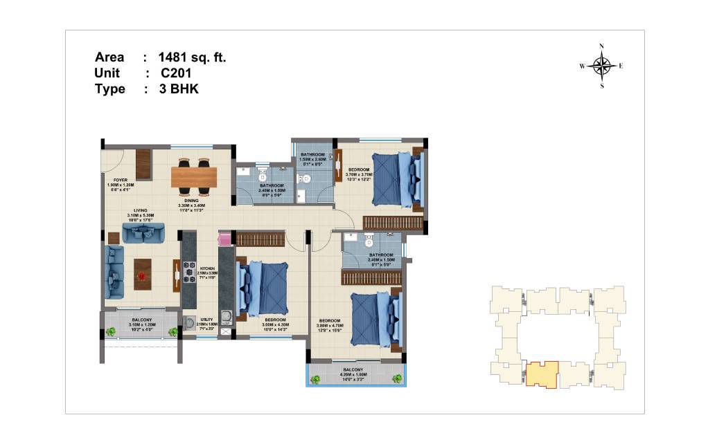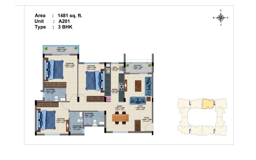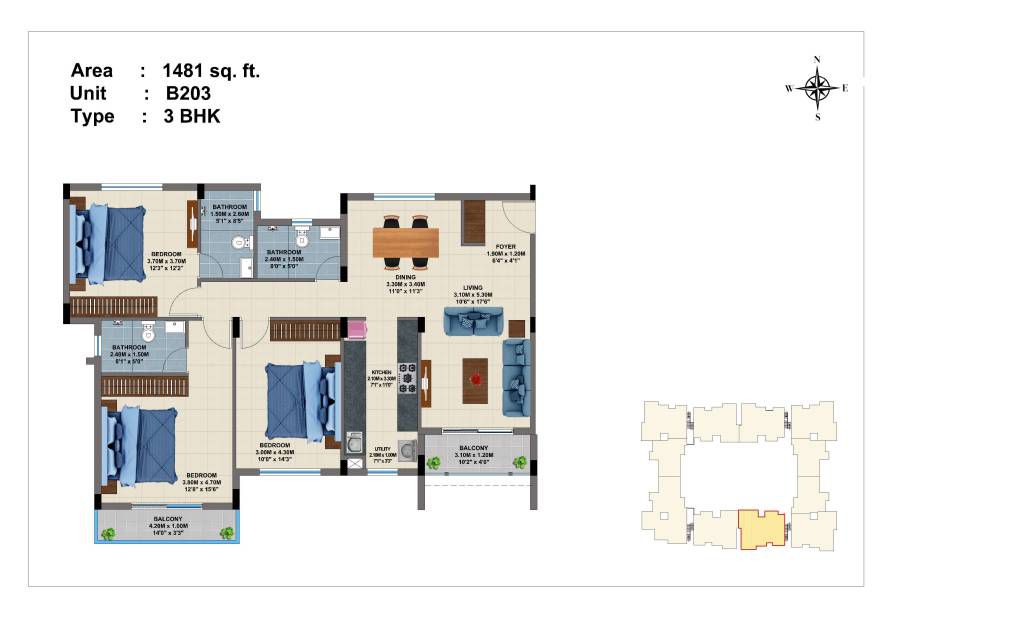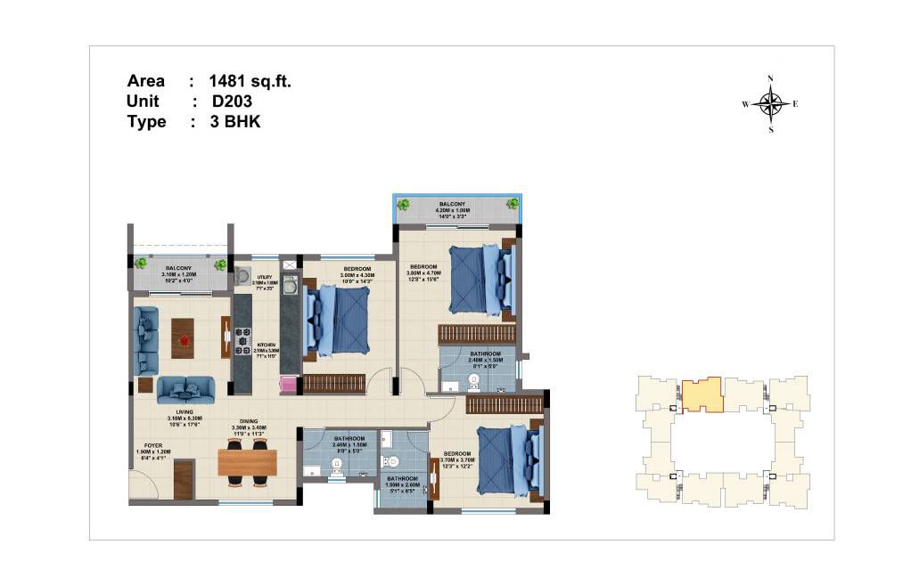 | 3 BHK | Regular | 1481 Sqft | ₹6200/Sqft | Sold out |