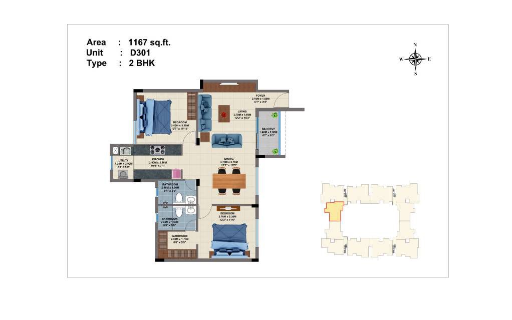 | BHK | Unit Type | Built-Up Area | Price Per Sq. Ft. | Price Range |